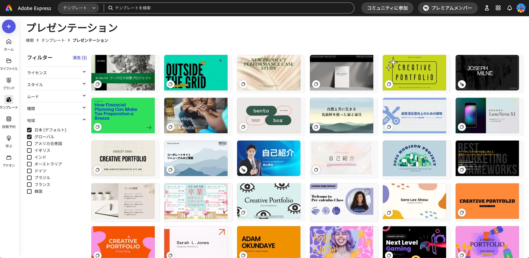 Adobe Expressは、初心者からプロまで幅広く使いやすいように設計されており、直感的でシンプルなデザインが特徴です。