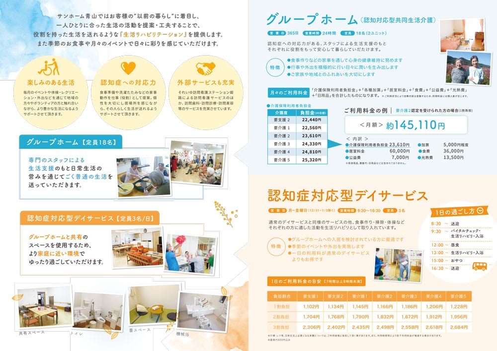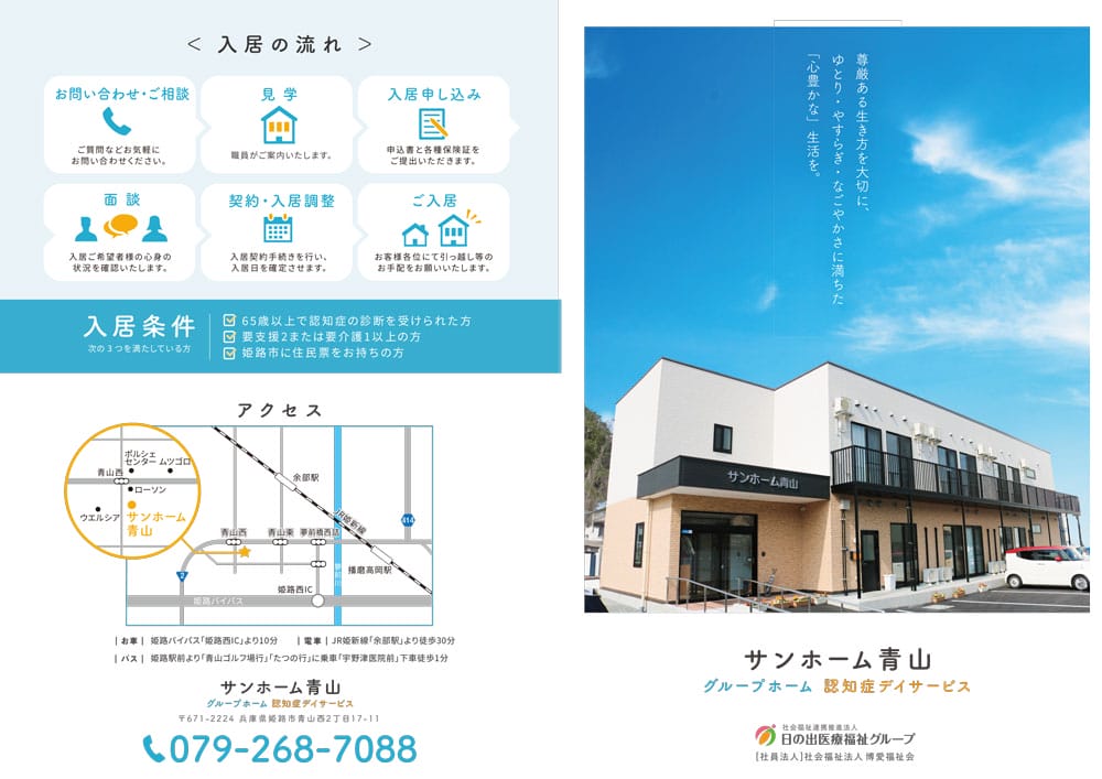 グループホームのパンフレットを新規事業の開始にともないデザインリニューアルしました。