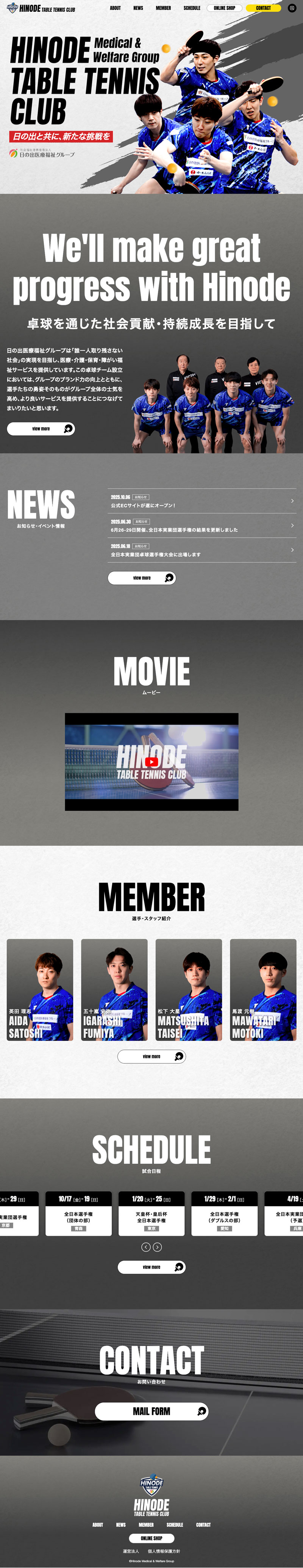 クールな配色とモダンなレイアウトを採用し、チームの熱量と躍動感を、Web上でかっこよく伝えています。